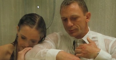 When Bond finds her in the shower, still fully dressed and shaking, he does the unthinkable. He helps. He gets into the shower and comforts her, showing a very unexpected moment of sympathy. (Of course in a scene a few minutes later, he grabs Vesper and holds her arms tight enough to hurt her so Bond isn’t even close to perfect with his treatment of women…). Even after their victory, there’s still a distance between them.