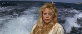 Domino and her brother have a different relationship in this film. Actually, Domino’s characterization is meeker for much of the movie and she reads as an innocent for much of the film. Played by Kim Basinger in one of her earlier starring roles, Largo’s younger girlfriend in this, not his mistress. Where Thunderball‘s Domino is world-weary and aware from the start that Largo is a creep, this one happens to find that out when he threatens her out of the blue during what had been a relatively cute scene.