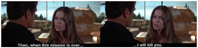 I mean, she’s seen as just as capable as Bond is and trusted with state secrets and there’s no joking about it. She’s definitely a different kind of Bond girl than what we’ve seen before. Her character to me feels like a definite stepping stone to the later Bond girls that we get who hold their own in firefights and who do just as well on the field of international espionage as our strapping spy does.