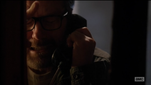 Walt tries to explain himself over the shouting but it’s definitely too late for that. Flynn hangs up, and Walt slowly begins to make another call to someone — the Albuquerque DEA. Holy shit. “I’d like to speak to the agent in charge of the Walter White investigation.” “Who may I say is calling?” “Walter White.” And then he leaves the phone off the hook so they can trace it and orders a drink at the bar.