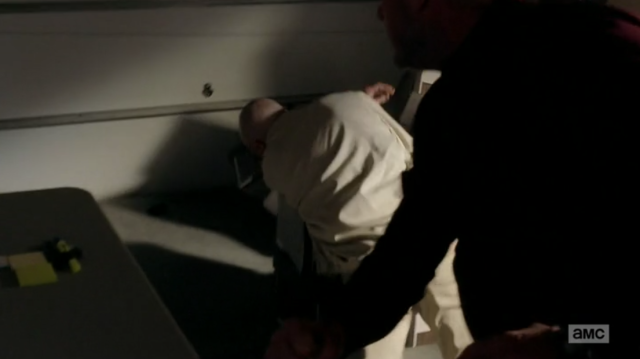 “I’m sorry you feel that way,” Walt says. But since he’s probably going to die anyway in six months, in six months Hank won’t have someone to prosecute, so even if he found enough evidence to convict Walt, “You and I both know I would never see the inside of a jail cell[…] What’s the point?”