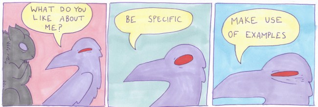 If you spend any time on Tumblr, you’ve probably seen one of incendavery’s comics go by on your dash—likely one that features his beloved corvid character. I’m a big fan of Dave’s creations, so I was thrilled when he gave me permission to feature his work here. It’s almost impossible to choose which comics to post, because the deeper you go through Dave’s blog, the more pieces you see that make you exclaim, “Yup, that’s me.”