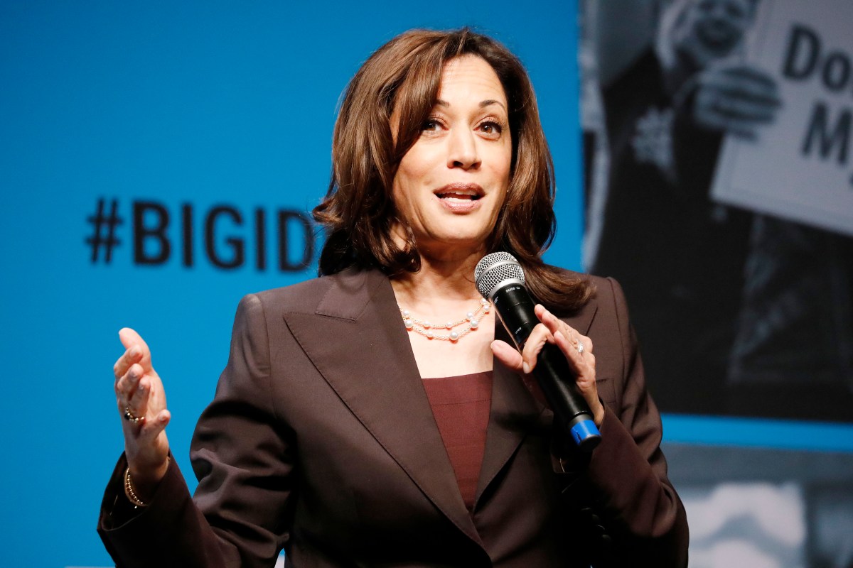 It’s true what they say: behind every great woman speaking her mind is some white bro waiting in the wings to interrupt her. California Senator and Democratic presidential candidate Kamala Harris was a featured speaker at MovOn’s Big Ideas Forum in San Francisco, where she was discussing her big plan for equal pay for women. Harris was part of an all-day event that also featured candidates Elizabeth Warren, Bernie Sanders, Julián Castro, and Kirsten Gillibrand.