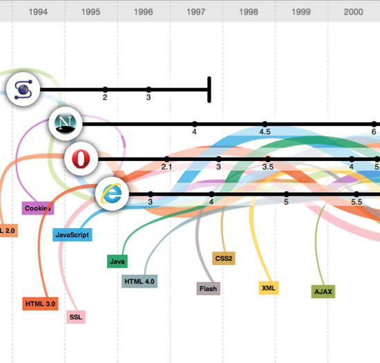 What’s really fun about this graphic is that it’s built in HTML5 and fully interactive. More than just pretty to look at, it’s chock-full of factoids about the growth of the net, as well as some useful information about how tools like HTML developed. Perhaps the most interesting are the screenshots of various versions of each browser, with each set practically a museum unto itself.