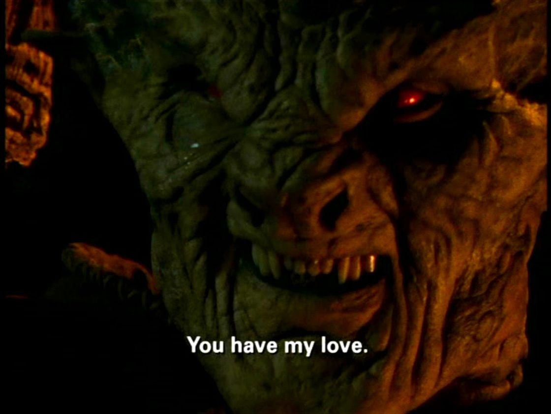 Everyone on the Internet has the power to hurt other people, and they only get more powerful as the Web sneaks into our pockets and our glasses and our relationships. If Buffy were set in the present day, Moloch would of course command a giant group of troll-zombies who could just attack Willow and eat her alive, because that’s how we conceive of Internet abuse these days. And that’s real and awful, of course. But what’s relevant to my own life and those of many other people is the episode as it is now: a demon who lives on love, who reels in a girl simply because she doesn’t have the tools to catch him in his lies.