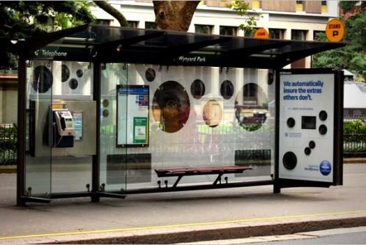 The gimmick works a little something like this: The bus shelter has some speakers in it and by using a smart phone and scanning a QR code on the shelter wall, you can download an app that will let you play a song over the speakers, your choice presumably being limited to songs listed in the app. The idea here is to drive home the point that NRMA Insurance covers cushy car features like leather seats and sound systems. The irony is, of course, that if you’re hanging out at a bus shelter, chances are you don’t have a car at all, much less one with a good sound system. Admittedly, it’s a pretty creative ad campaign, but talk about targeting the wrong audience.