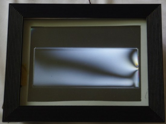 What do you do with a broken laptop? Well, if you’re Pedro, you convert the LCD display into a nifty polarized art installation. The device is essentially a standard LCD display that’s been retrofitted to a frame and bled dry. Pedro removed the display from the laptop, of course, drained the liquid crystal fluid and fit the empty display to a picture frame, leaving a little room in between the two LCD display panes. The result is that, after re-rigging the backlight, you’re left with a little framed box in which you can place polystyrene and polycarbonate plastic items and enjoy the trippy polarized result.