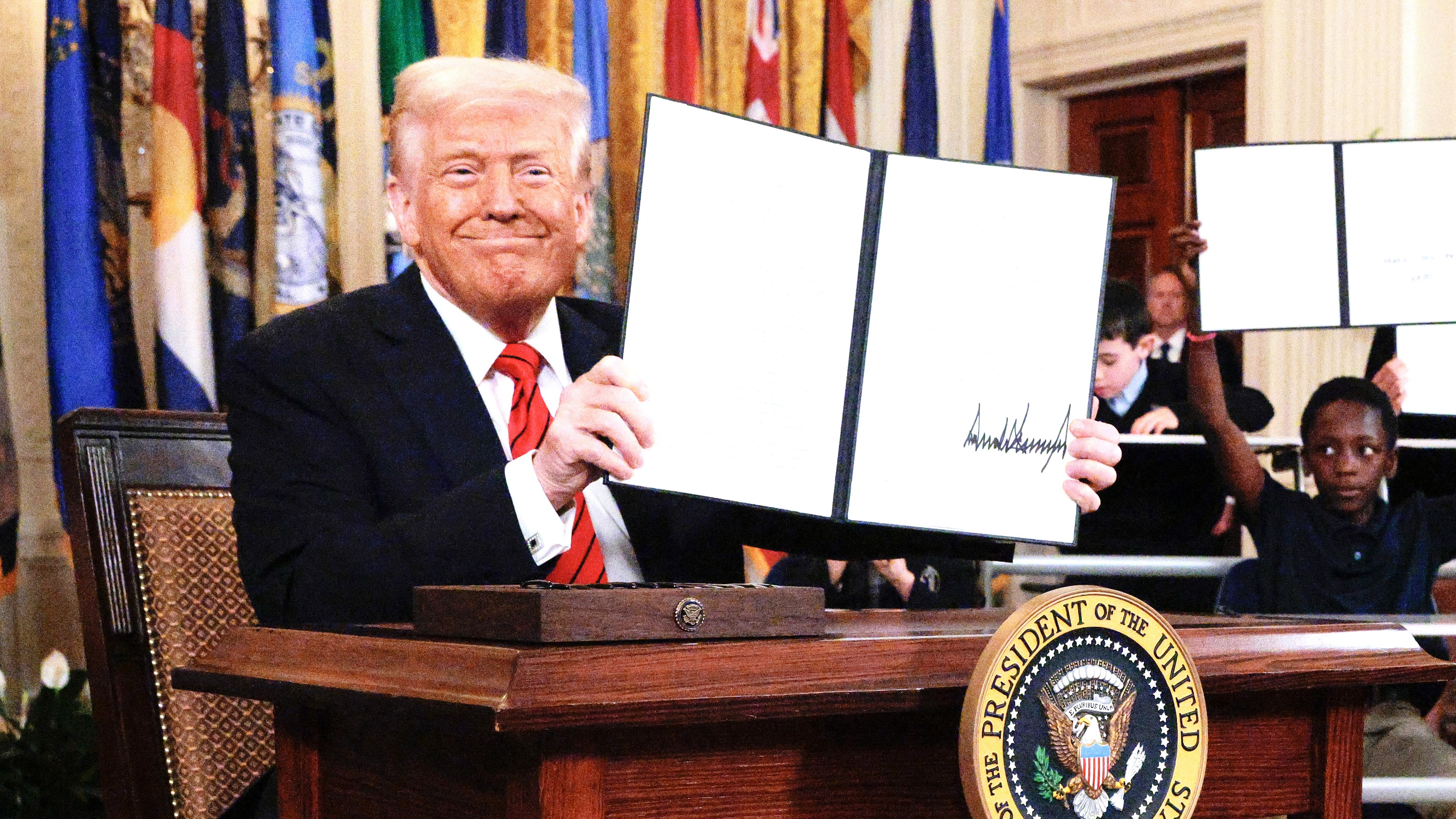 Trump surrounded himself with children as he signed the document, vowing that its days are numbered: