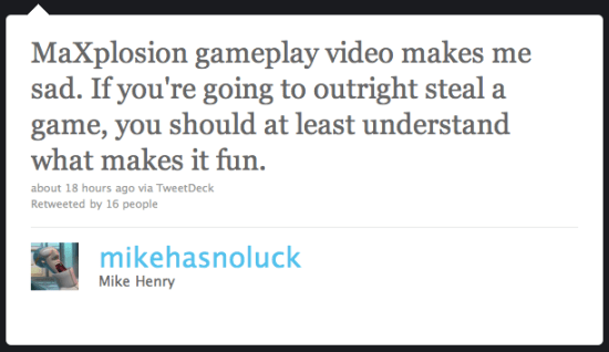 Employees of Twisted Pixel weren’t to happy about it either, releasing some choice tweets regarding MaXplosion.