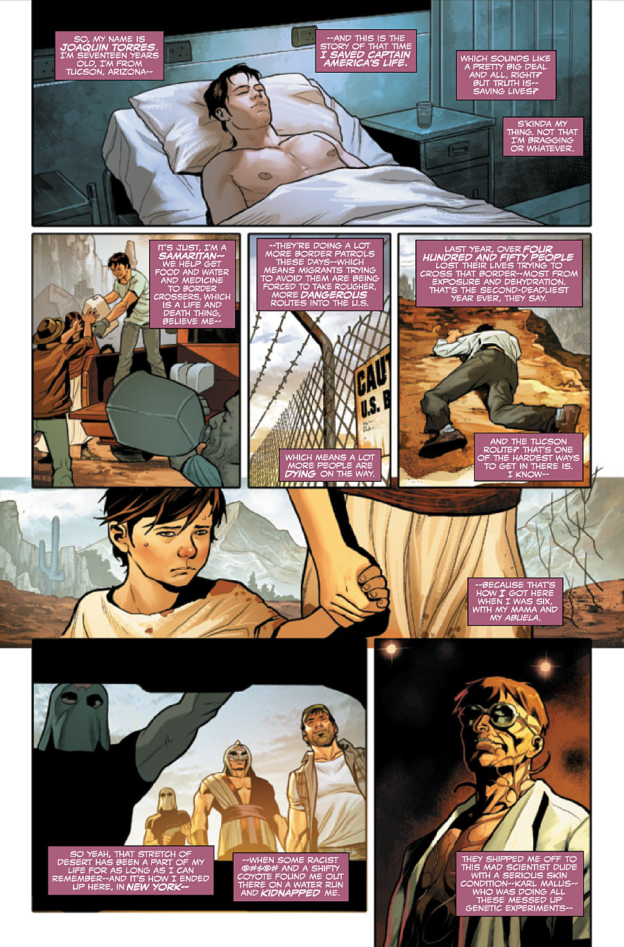 So, the new Falcon is a young Latino named Joaquin Torres. Would I have been a little bit happier if the new Falcon had been a young Latina? Of course! But still, this is pretty cool. I also love the backstory. I didn’t know much about Samaritans until I moved to Los Angeles. I’ve been to readings featuring Latina writers, and some of them have written about their experiences bringing food and water to these people who are literally dying to make their kids’ lives better. And it’s not about any sort of a political agenda either—unless you consider not letting people drop dead in the desert an “agenda.”