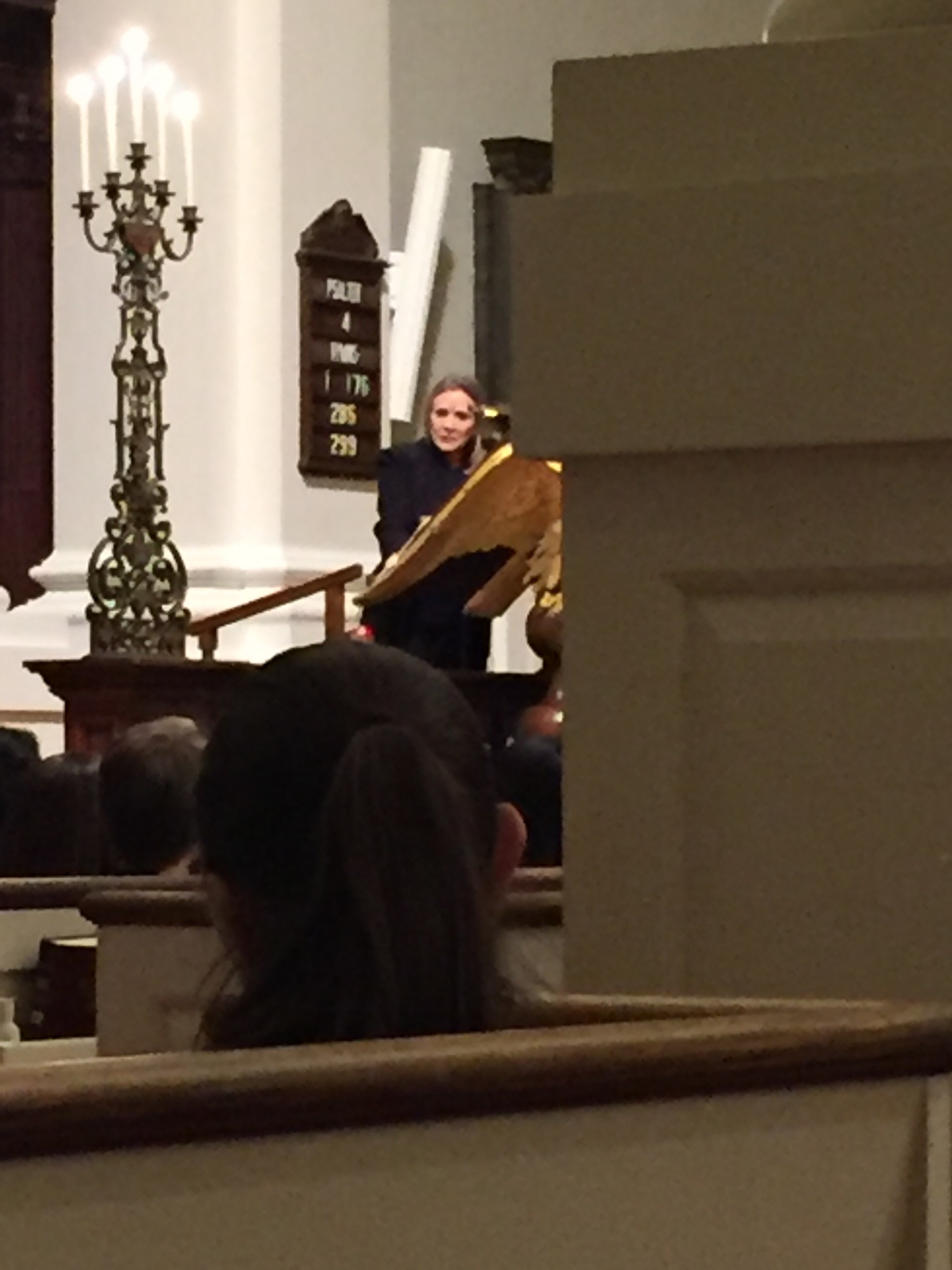 I didn’t expect any of this, because this event isn’t, y’know, an official Star Wars event. But I guess any event that Carrie Fisher does might become a Star Wars event. And it didn’t just stop at cosplay! When I got inside, I saw that the entire Harvard Pops orchestra had set up in the front of the church, with the brass section in the balcony. I could tell from their warm-up that they were going to play a Star Wars song.