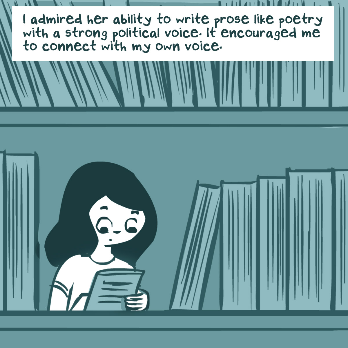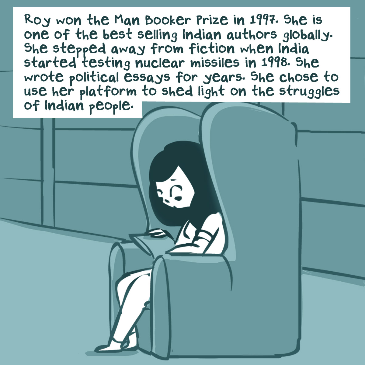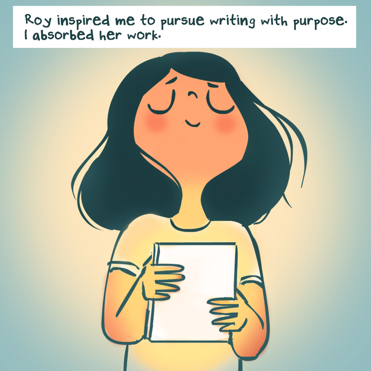 Continuing to speak with amazing female illustrators for Women’s History Month, we got the chance to speak with Nidhi Chanani, author of Pashmina which we loved last year. Chanani was generous enough to not only speak with us, but also make this beautiful comic about one of her female heroes, author Arundhati Roy.