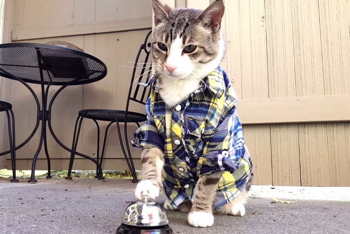 Monday Cute: Well-Dressed Cat Rings Service Bell So It Can Haz Treats