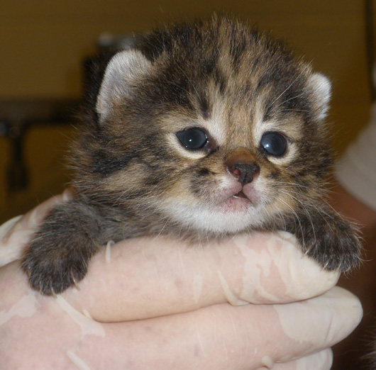 Both kittens were born February 13, 2011 to a surrogate mother named Bijou. The sperm used to conceive them was extracted in 2003 from a 6-year old male named Ramses. Omaha’s Henry Doorly Zoo Center for Conservation and Research – Reproductive Sciences Department then sent the frozen sperm to the Audubon Center for Research of Endangered Species and combined it with the eggs from a female named Zora in 2005. They were finally transferred into Bijou this past December.