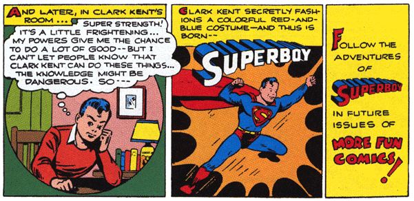 Jerry Siegel introduces an adolescent version of Superman, named Superboy, in More Fun Comics #101. Superboy and his adventures in a town called Smallville are considered to exist outside of the official Superman canon.