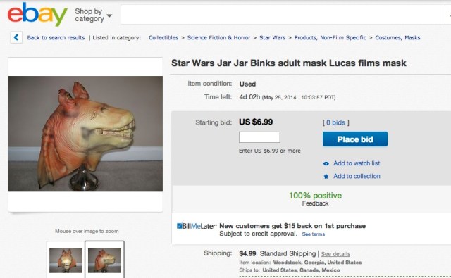 Weird this Jar Jar mask has zero bids.