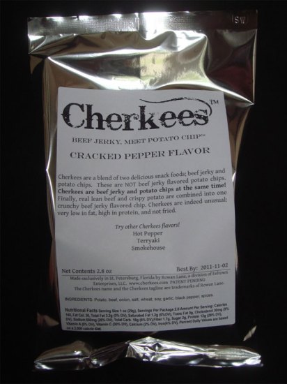 Like regular beef jerky, Cherkees are low in fat and high in protein; they have twelve grams of protein per serving and have less than one third the fat of regular potato chips. Unlike the majority of potato chips, Cherkees aren’t fried. Cherkees come in traditional beef jerky flavors, like Cracked Pepper, Hot Pepper, Smokehouse and Teriyaki.