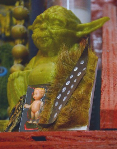 I was granted a tour of the IKOC den/workshop/homebase, inside of Castillo Blanco, yesterday. This is where a lot of the parade contraptions are housed and worked on. Chewbacchus is a walking parade, meaning they don’t have huge floats pulled by tractors; rather, they have handmade, cobbled together, contraptions that are either pulled, peddled, or pushed along the parade route by the people who made them. With the exception of a select few remote controlled/battery operated contraptions (like a full scale, remote controlled TARDIS), everything is powered by hand or by foot. There are a lot of bicycles, tricycles, rickshaws and shopping carts being re-purposed as nerdy people movers, floats, and (the all important) beer dispensaries. The “bacchus” part of Chewbacchus was not a mistake. In addition to being a play on the more traditional and popular Bacchus parade (which rolls next week, if you’re so inclined), Chewbacchus is all about bacchanalian (or bacchanALIEN) revelry, so many of the contraptions you’ll see rolling down the parade route are, in fact, working bars/kegs.