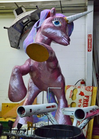 This glittery behemoth of a unicorn is the work of the Mystic Krewe of P.U.E.W.C.