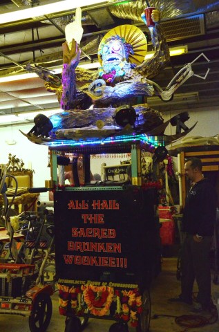 If you’ve been paying attention, you’ve heard me go on about Chewbacchus before; well, here’s where I explain exactly why this relatively new parade has been growing by leaps and bounds every year and has a distinctly cult-like following (more on the cult thing later). Read on as I go on an exclusive tour of the parade’s “den” (where many of the contraptions are created and stored), introduce a brand new sub-krewe, and give you guys a sneak peek of some of the awesome, hand-made stuff you’ll see rolling down the parade route: