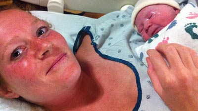 And then she thought it might be a good time to give birth to her daughter, June, who weighed in at 7 lbs, 13 oz. at exactly 10:29 PM. Miller arrived at the hospital wearing the medal she received from running the marathon.