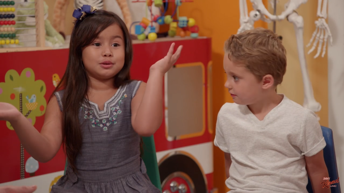 After that speech, Kimmel also shared the above interviews with some children. A lot of this video is “cute kid” jokes, in line with Kimmel’s usual all-audiences shtick, but it’s telling how easily the children can answer these basic questions about compassionate, appropriate behavior.