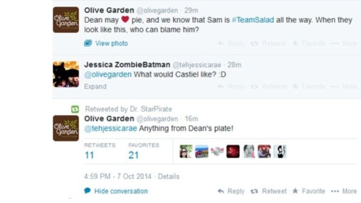 While some Supernatural and Destiel fans called this a betrayal, others began claiming that Olive Garden was the better restaurant anyway. This is an inside joke for fans who know that Olive Garden was an enthusiastic Destiel shipper, having tweeted an interesting response to fans asking what Castiel’s Olive Garden order would be—and it had to do with Dean! The brand was known to even engage with Supernatural fans on Supernatural Day, which falls on September 13 every year, in honor of the premiere date of the beloved series.