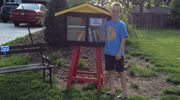 9 year old Spencer Collins set up the “Little Free Library” in his front yard so the community could share in his passion for reading. Spencer told KMBC that he was inspired to start the project because books make him feel like “I’m in a whole other world, and I like that. I like adventure stories because I’m in the adventure and it’s fun.” Get a load of some of the great titles he had available to the community in his collection: