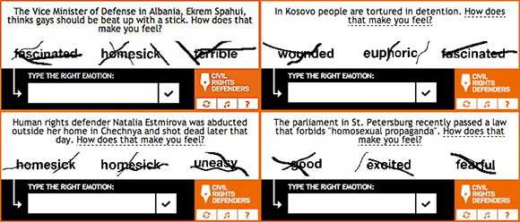 I can be a cynical person, but I have to say, this is pretty cool. Swedish human rights group Civil Rights Defenders has created a new type of CAPTCHA that requires those who want to register for or comment on a Website to choose the proper emotional response to a human rights violation in order to prove themselves not a spambot.