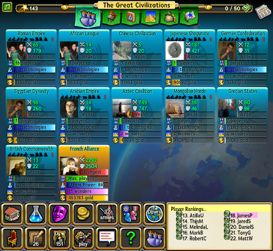 For the Civ veterans or those new to the series wondering if the game is winnable, unlike most civilization-building browser games: Yes, the game is winnable. A match will move through various eras of time — like any Civ game — and each civilization will obtain points when they “beat” an era by achieving one of that era’s goals. The goals aren’t really achievable without teaming up with the rest of your civilization, but I suppose a power player who figured out the best possible strategies in the game (and possibly spends a lot of CivBucks) could conceivably achieve a goal all on his or her own.
