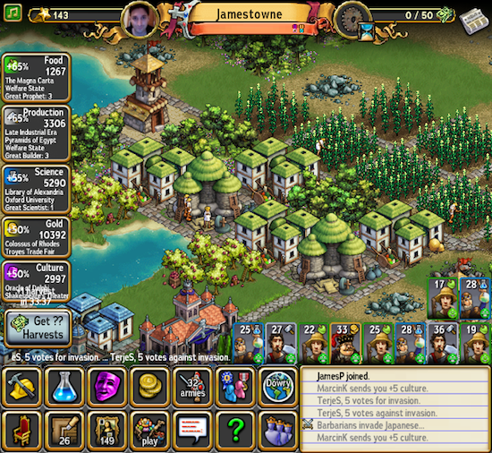 Do not worry, I didn’t actually name my town Jamestowne. What is probably the best aspect of Civ World, is that it seems to take the first name of your Facebook profile and throws a town-based suffix on the end. Jamestowne, Evanboro. Charming.