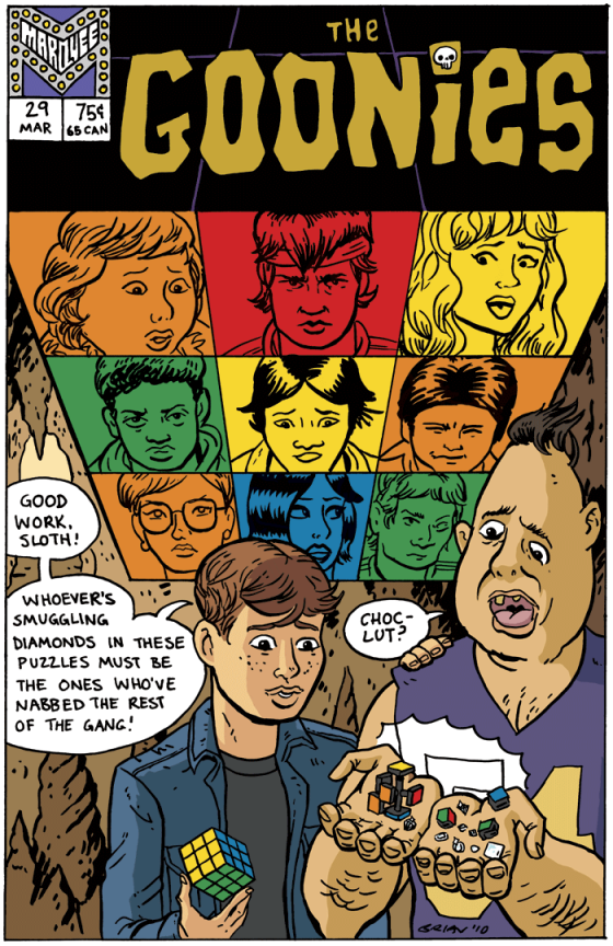 Artist and funny guy Brian McLachlan wished that cult movies like Mad Max, Red Dawn, and Goonies had gotten their days in the comic book sun, untainted by “staff writers with no love for the characters.” So he made it happen — well, the covers, at least — having lots of fun with classic comic book styles in the process.