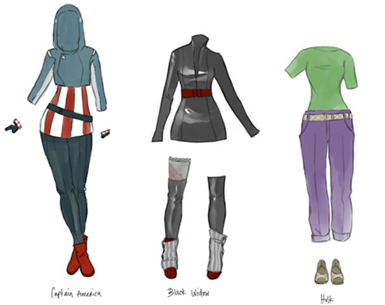 Here’s the rest of the stylish Avengers by KaciArt. They are all something I would try on but I’m all over that Captain America outfit.