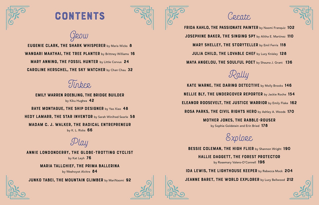 Today, we are happy to share a preview of the upcoming book: the cover and table of contents, as well as an excerpt drawn by Sarah Winifred Searle (Sincerely, Harriet), written by Erin Bried, and covering the accomplishments of Hedy Lamarr, who was not only a Hollywood star but a brilliant inventor—truly, a woman who could do both.