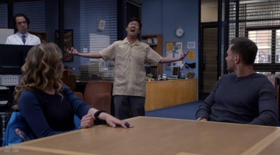 The investigative team is led by Mr. Stone, and since there’s no actual heavy crime drama stuff this week, and everyone is innocent, they all agree to do the lie detector test in honor of Pierce’s last wish. Of course, things quickly degenerate as the questions Pierce left are obviously intended to get everyone mad at each other, and Chang leaves immediately instead of answering the first question directed at him, “Have you ever masturbated in the study room?”