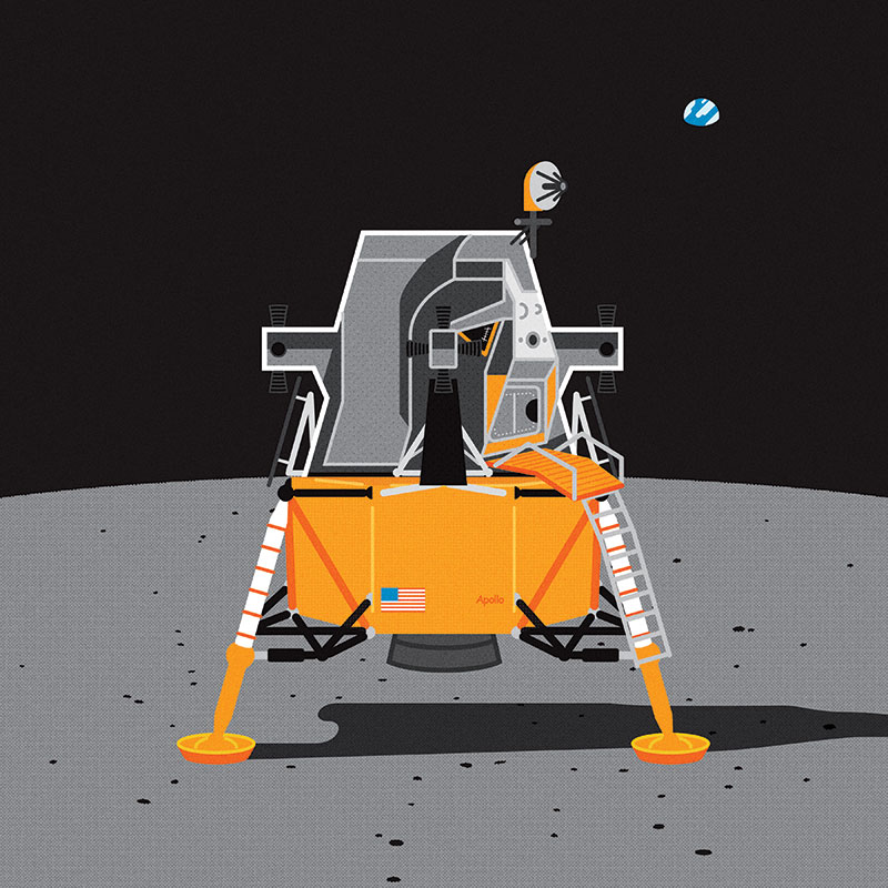 Designer and printer Brad and Sara McNally rallied a number of artists to put together a series of twenty-six images that they call Cosmic Sans, or a bold image representing something in those spacey parts of science fiction and science fact for each letter of the alphabet. Here are eight of our favorites, presented, of course, in alphabetical order!