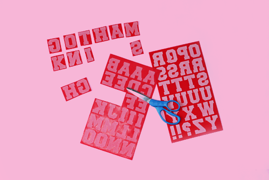 Following Batwoman’s uniform, we’re going to spell out “Gotham Knights” on the back of our jacket. Remember, you’ll need two packs because there isn’t enough letters! (Learn from my mistakes) So we’ll need to cutout around each letter that we’ll need. It doesn’t have to be perfect, but good enough so you can arrange the letters appropriately.