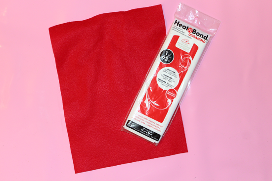 Now we will be making her emblem to place on the front of the jacket in a few simple steps! First we’ll need to cutting an appropriate size of felt and the heat n bond sheet. You will be placing the felt on top of the textured side of the sheet. Then flipping it over to iron the two to bond them!