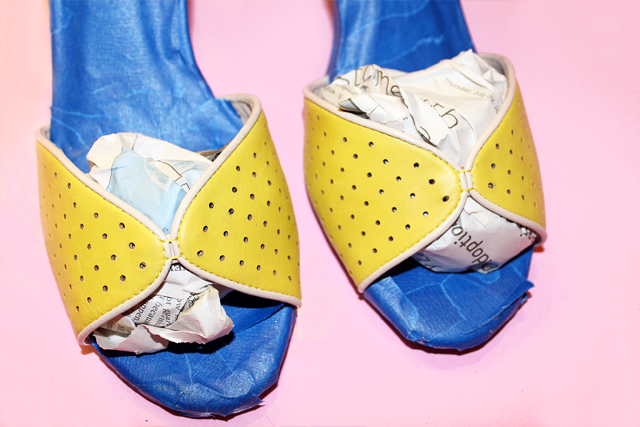 Step 3: Add crinkled newspaper to the front of your shoes. This will stretch the shoe a bit and prevent any creases when you slip your foot in and wear them out.