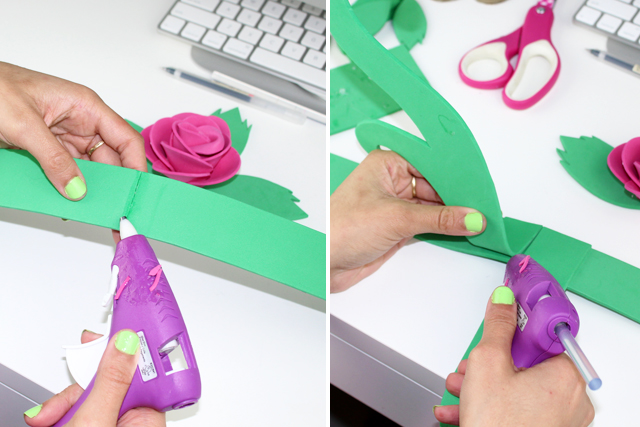 Attach two your two strips for your belt and then stems with a small amount of glue.