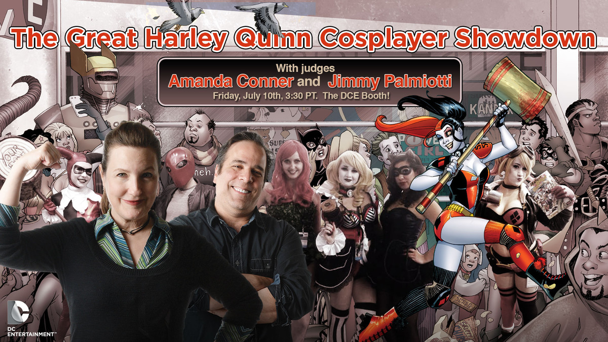 Harley Quinn creative team Amanda Conner and Jimmy Palmiotti will be judging “The Great Harley Quinn Cosplayer Showdown” at the DC booth (#1915) Friday at 3:30 p.m. According to Robot 6, Conner and Palmiotti “will determine first the finalists and then the winners based on creativity, attitude, overall adherence to the character, and enthusiasm.”