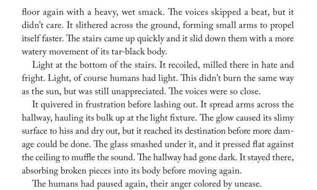 The earliest review we have thus far from author Max Gladstone calls it a “Terrifying shadow monsters haunt a vividly rendered working-class present with the sins of generations past. A thrilling ride, with promise of deeper mysteries to come.” I’m sold!