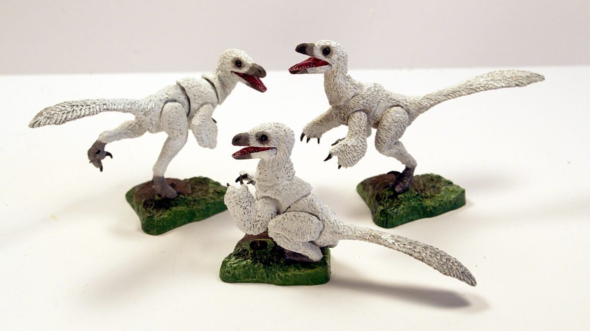 Before they grew into ferocious adults, raptors were cute little babies — albeit with pointed teeth and razor-sharp claws. At 3” long x 2” tall, these three snow-white nestlings scale perfectly with the deluxe adult figures. With eight points of articulation and interchangeable parts, they are cute and highly customizable! (Nestlings 3-Pack at Creative Beast, $29.99)