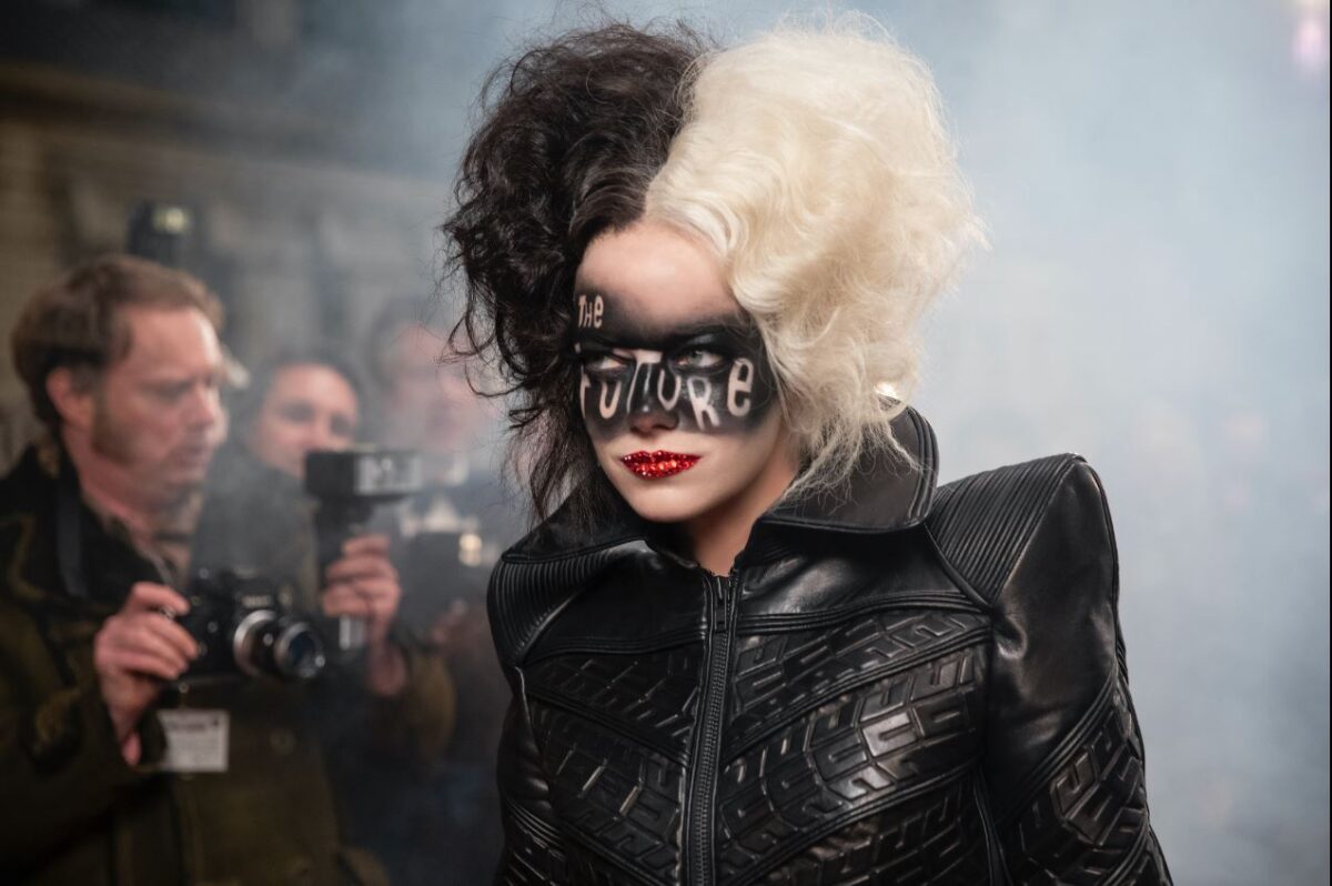 From there, the film takes a page from The Devil Wears Prada, as Estella is drawn into the seductive world of high fashion, where she meets the intimidating and renowned designer Baroness von Hellman (Emma Thompson). What follows is a fashion rivalry, with Estella adopting the alter ego “Cruella” as her own punk-rock rebellion against the Baroness and the fashion industry.