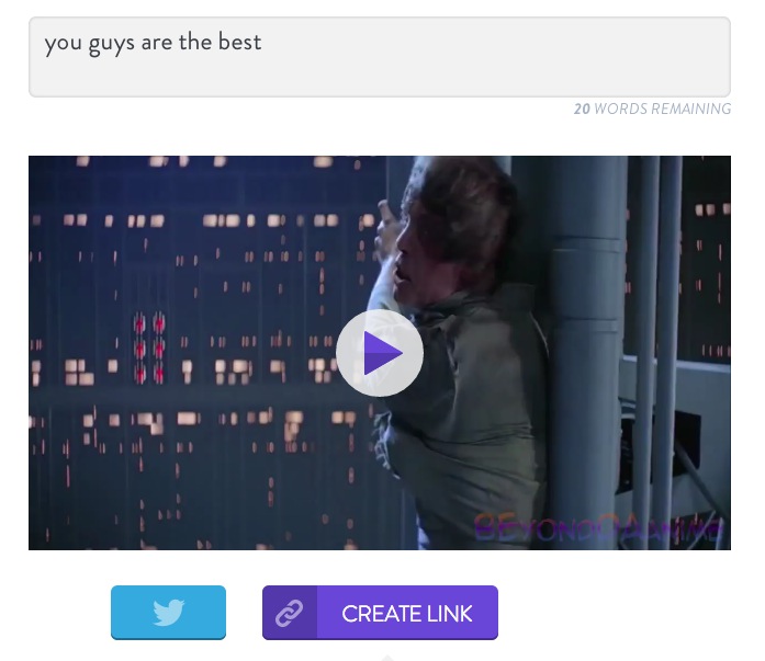 It’ll even generate a link for you to send to your friends, so you’ll never be stuck trying to communicate your feelings through standard methods again. They’ll probably react kind of like this. As you can see, it has a pretty decent vocabulary and BEE AND PUPPYCAT CLIPS!