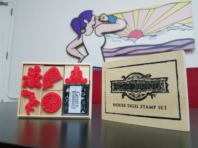 House Stark looms large in the struggle to rule Westeros, so it’s fitting that you get not one but two crucial Stark-themed items. First, there’s a gorgeous vinyl statue of Jon Snow’s direwolf, Ghost. Ghost was a hit the minute he was unboxed—we all wanted to take him home. And with Direwolf-shaped The North Remembers notepad, you can leave memos that aren’t likely to be forgotten.