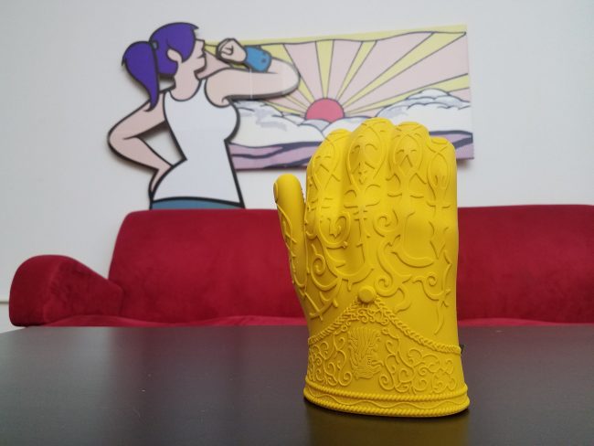 This tongue-in-cheek nod to Jaime’s unfortunate hand incident is designed just like the golden model worn by Nikolaj Coster-Waldau on Game of Thrones—with a twist: this glove lets you defeat any too-hot kitchen implement and bend it to your will. (No Cersei included, we promise.)