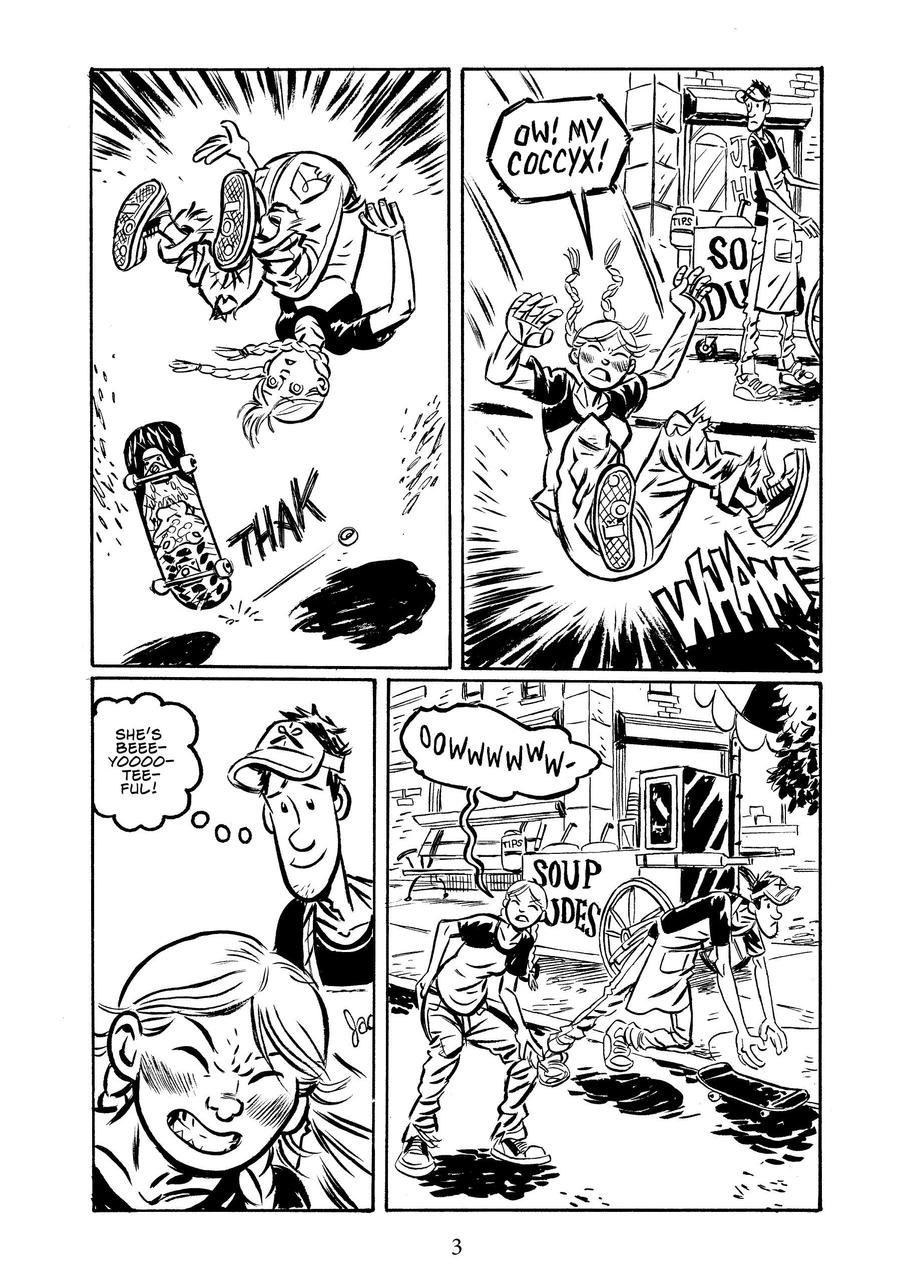 From Jane, the sweet skateboarding protagonist, to the bumbling but well meaning Jack, the hapless love interest, it was hard for to find a character that we didn’t immediately adore. Even Jack’s awful womanizing roommate, Gil, isn’t without his moments. He’s terrible, but plays an excellent foil to Jack’s kind hearted character.