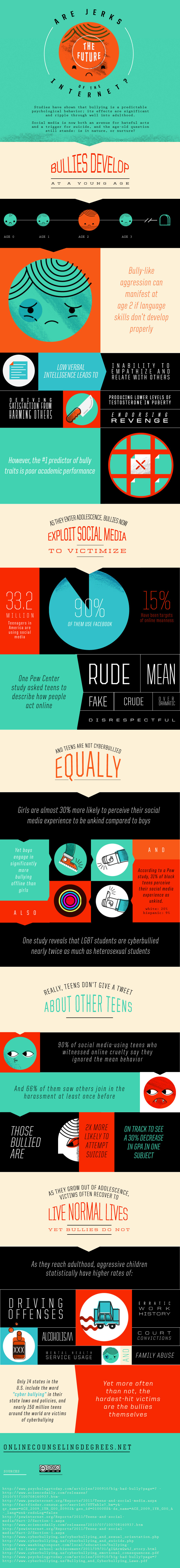 It is impossible to use the Internet without encountering an enormous jerk. If you never have, just mosey over to the YouTube comments for any given video. The long-term repercussions of these less than pleasant interactions for everyone that uses the Internet are still unclear, but people are certainly wondering about it right now. This infographic paints something of a bleak picture, delving into the development of aggression and the surprising number of teenagers today that experience cyberbullying. Who knows what it means for the future, but it’s certainly a surprising read.