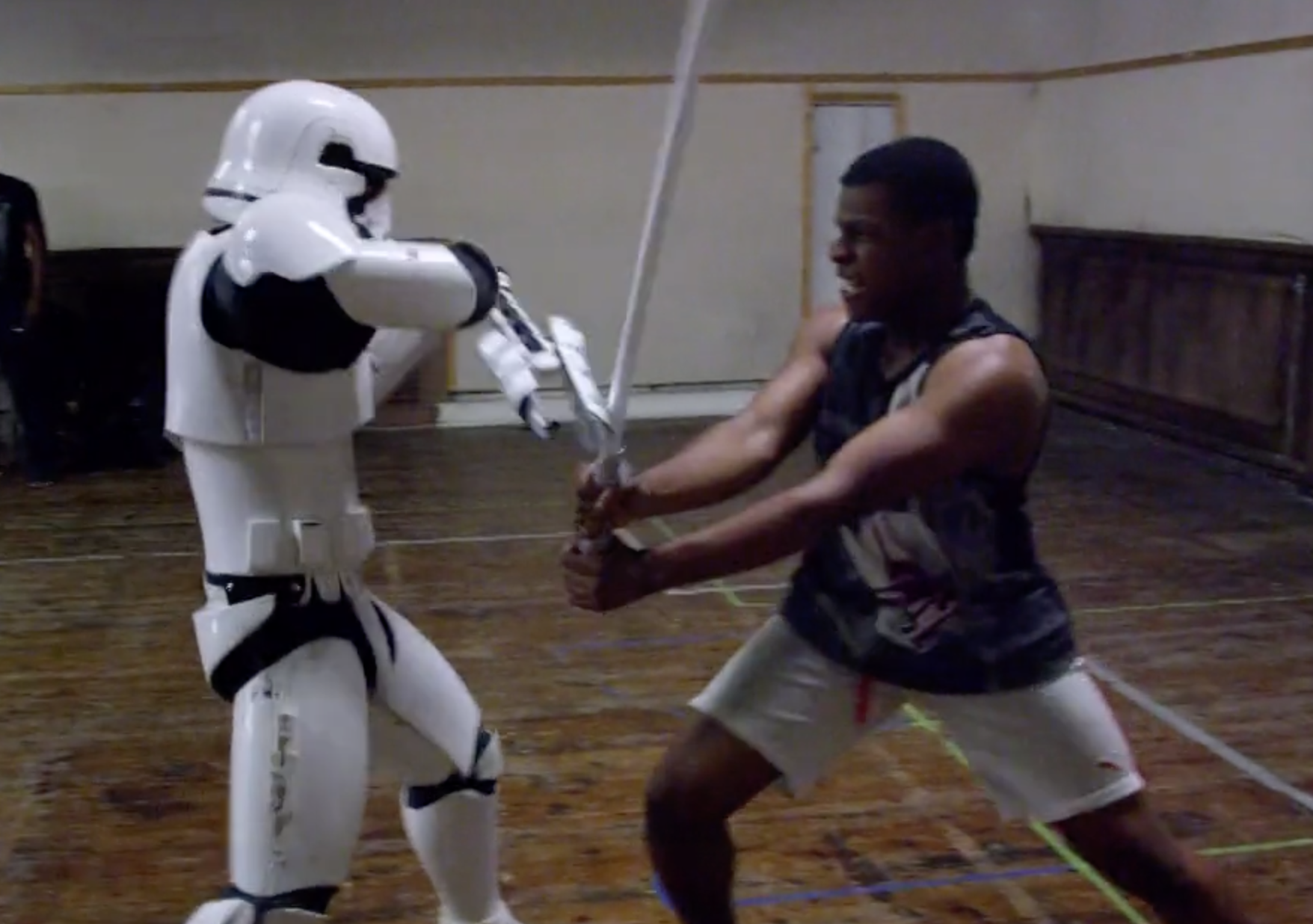Oh! There’s even a nice bit in the clip, showing a gym-clothed out Boyega training with someone who looks to be the stuntman who played the internet’s new favorite stormtrooper, TR-8R. Definitely check it out.